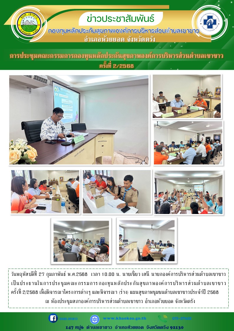 การประชุมคณะกรรมการกองทุนหลักประกันสุขภาพ อบต.เขาขาว ครั้งที่2/2568