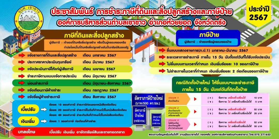 ประชาสัมพันธ์ การชำระภาษีที่ดินและสิ่งปลูกสร้างและภาษีป้าย ประจำปี 2567
