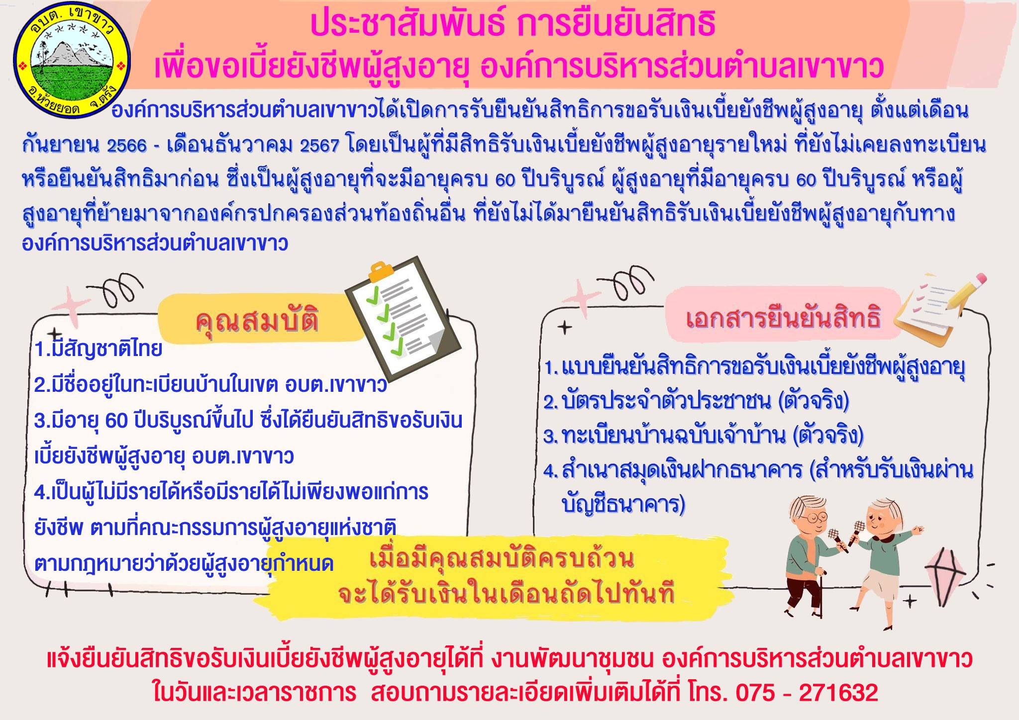 ประชาสัมพันธ์ การยืนยันสิทธิเพื่อขอเบี้ยยังชีพผู้สูงอายุ ตั้งแต่เดือนกันยายน 2566 - ธันวาคม 2567
