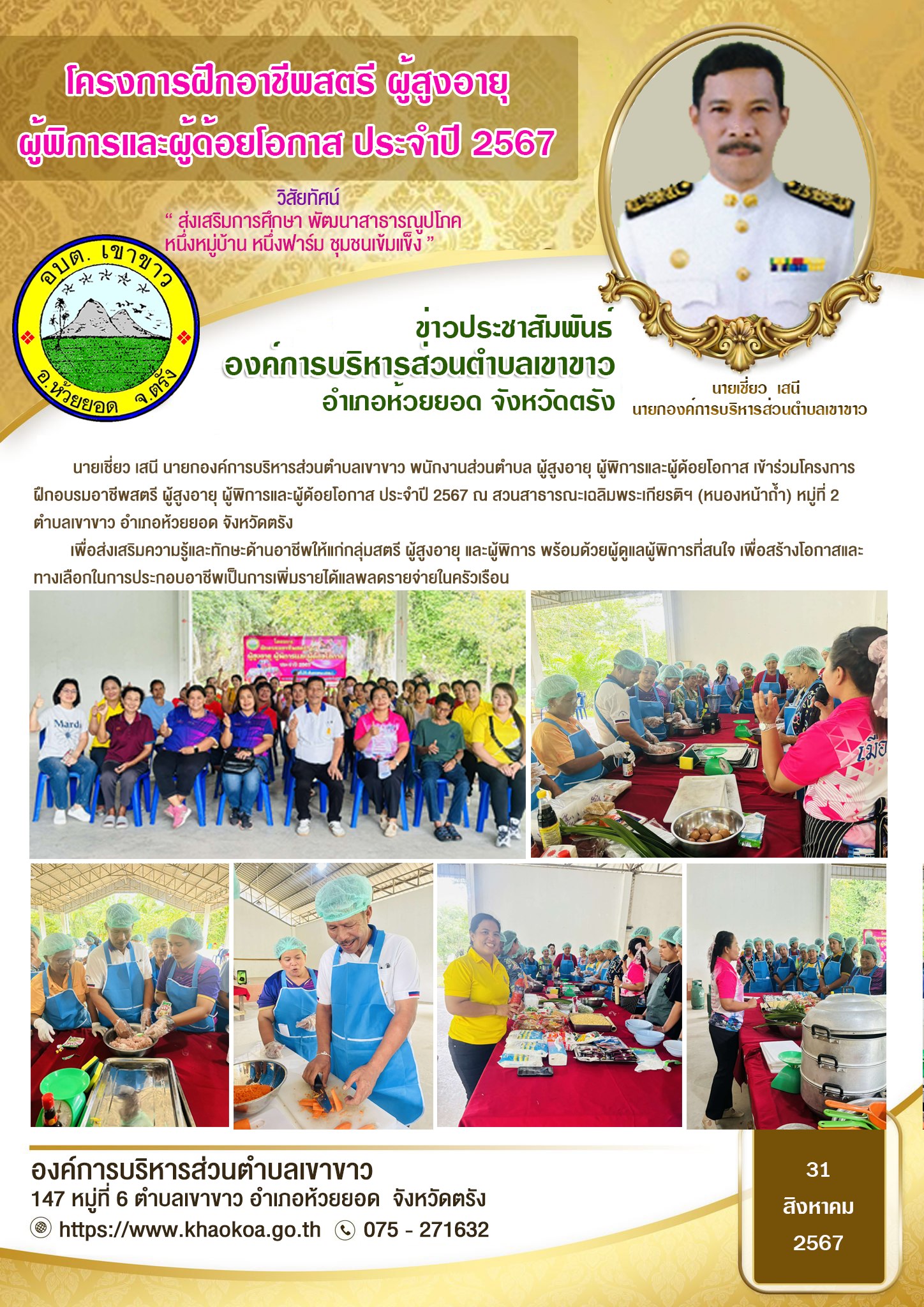 โครงการฝึกอบรมอาชีพสตรี ผู้สูงอายุ ผู้พิการ และผู้ด้อยโอกาส ประจำปี 2567