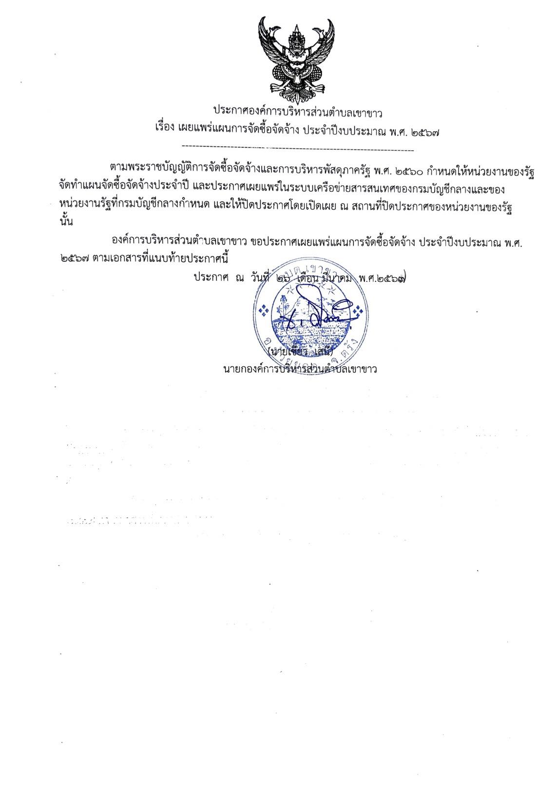 ประกาศ เผยแพร่แผนการจัดซื้อจัดจ้าง ประจำปีงบประมาณ พ.ศ.2567